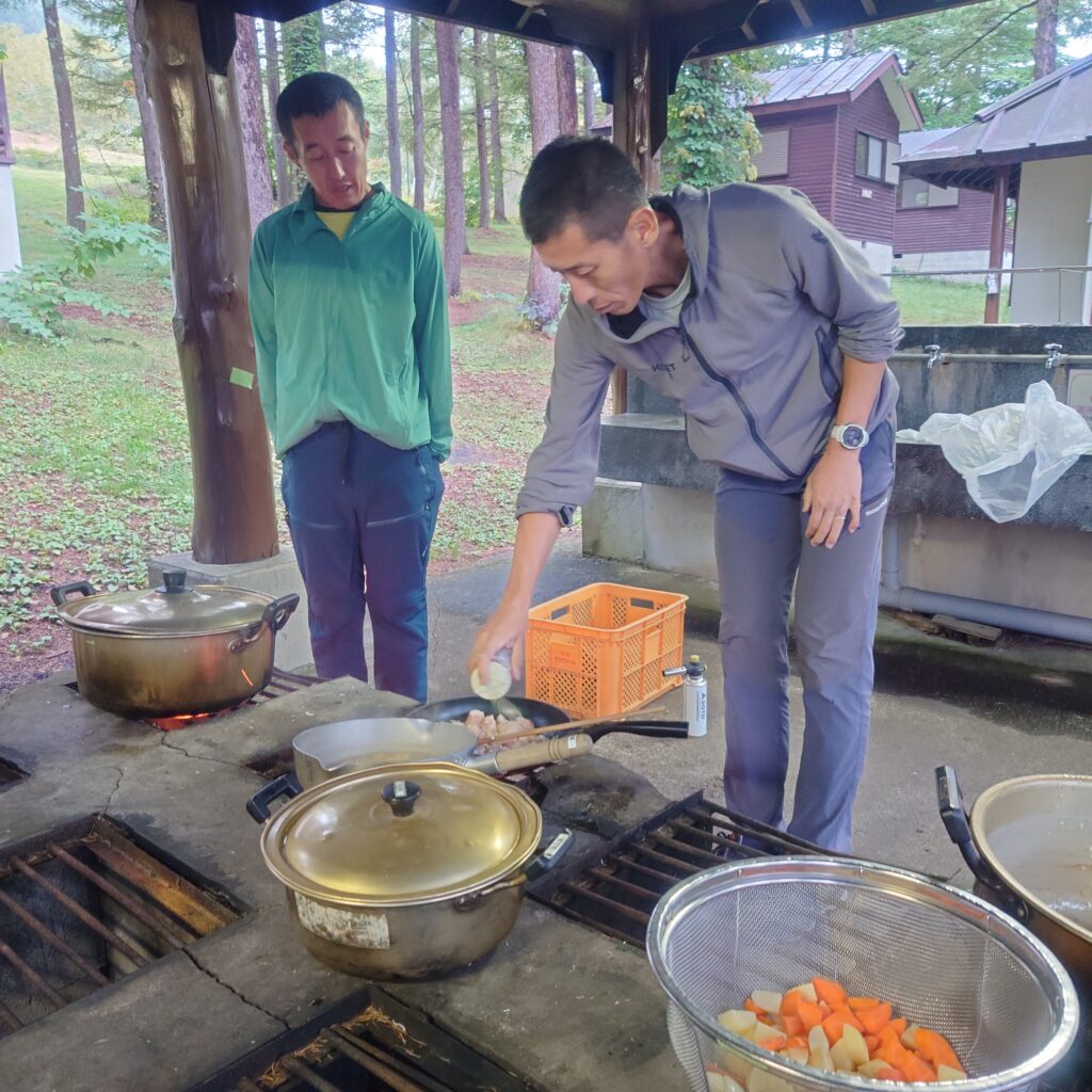 今年も宿泊場所は何度もお世話になっている宝台樹キャンプ場。早速挨拶を済ませたら、夕食準備開始➰