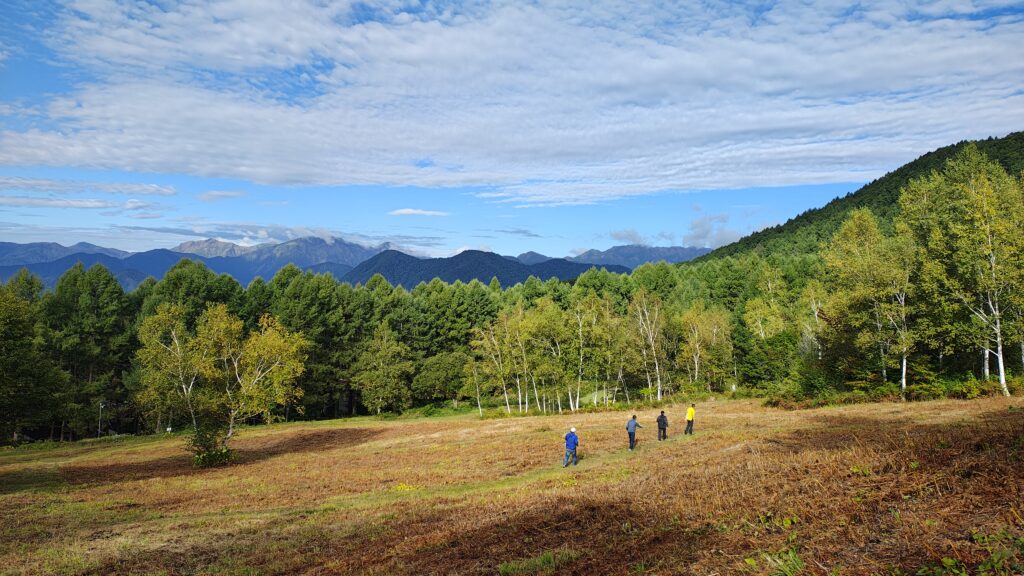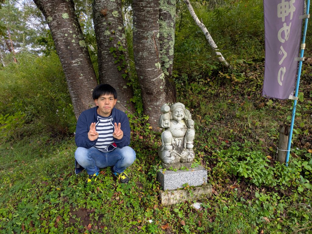 朝食を終えると、宝台樹キャンプ場内にある七福神巡り。35年ほど前、宝台樹スキー場の1コースとして設計されたものの、設計変更があったという曰くつき?の斜面を上り下りしながら「あっちかな。こっちかな。」と利用者さんの言葉とは裏腹に、こっちの方へ行った記憶があるなぁと、職員は昔の記憶に頼ります😅