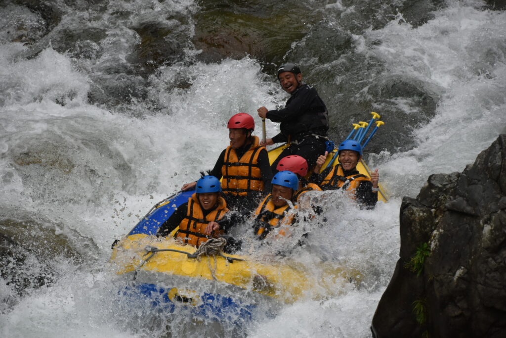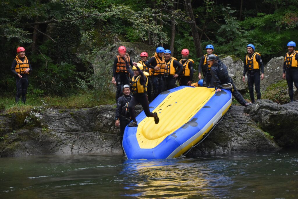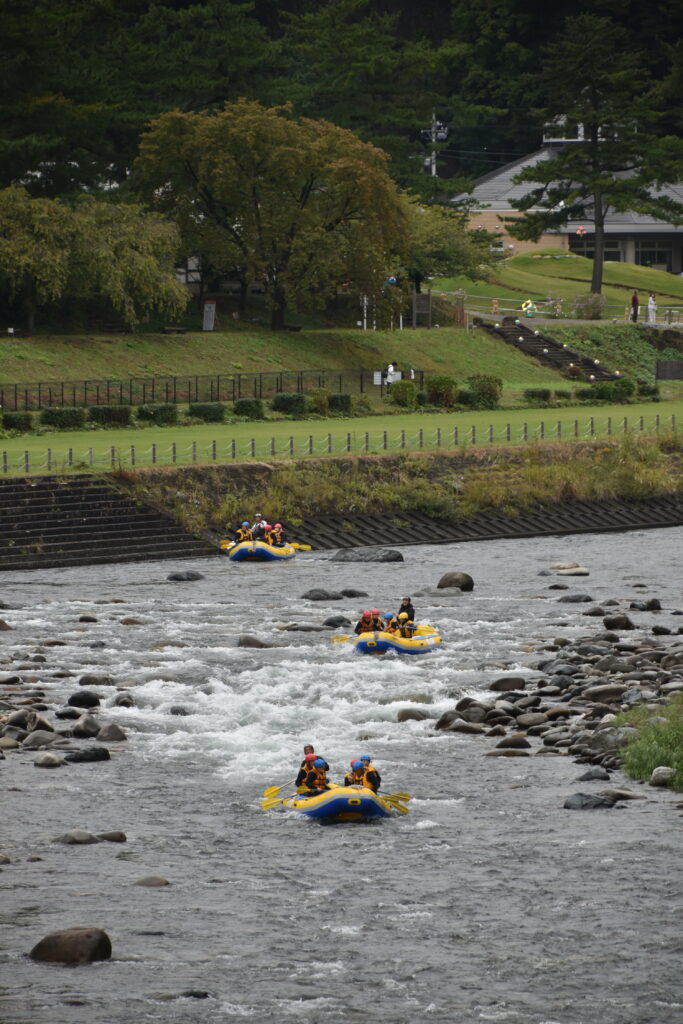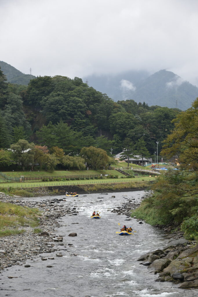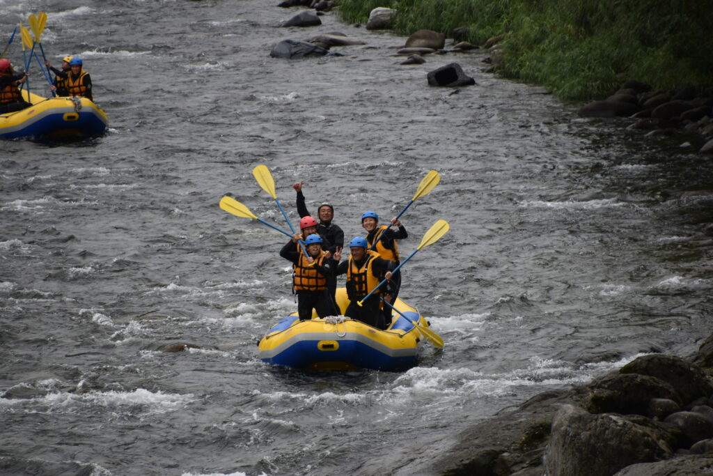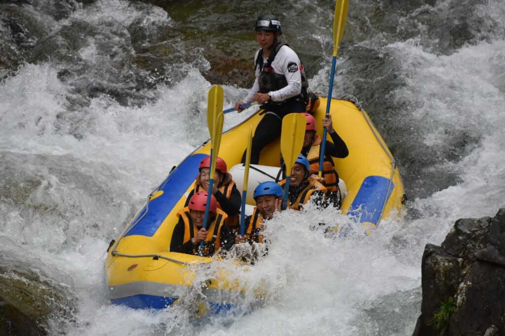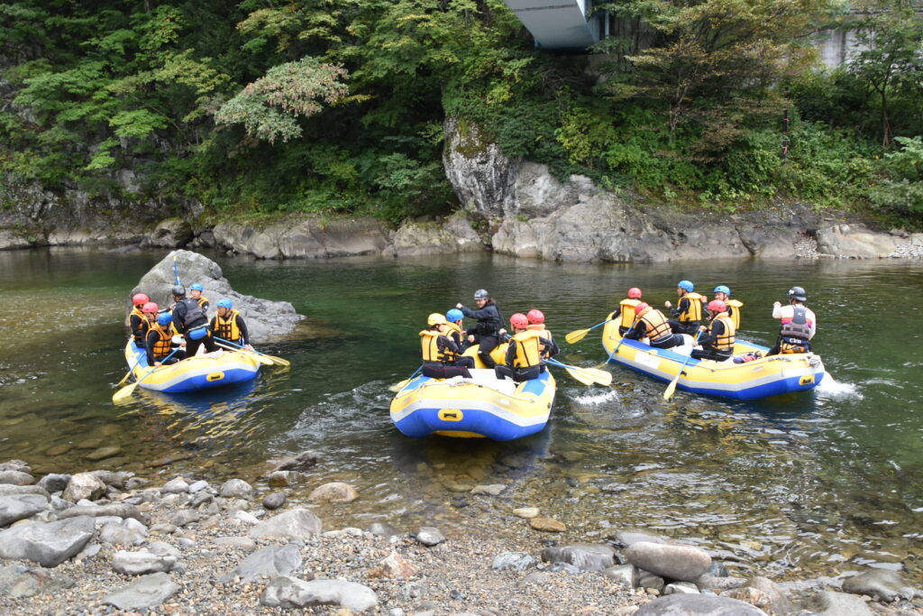 準備を済ませバスで利根川上流まで移動し、事前説明や注意事項、そしてグループごとにラフトボートのフォーメーションの確認を済ませ、早速スタート。最初はゆっくりとしたペースでボートを進めながら同乗しているスタッフガイドの話を聞きながら川を下っていきます➰