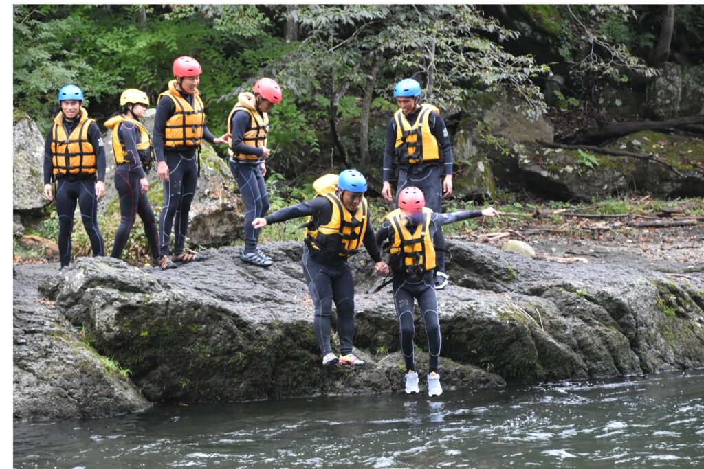 途中、ボートから降りて岩場から川に飛び込んで遊びました。