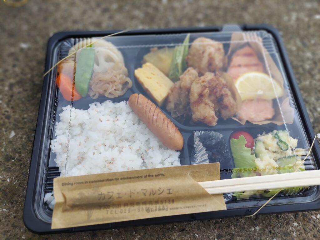 お昼ごはんはお馴染みになりつつある、「カフェ・ド・マルシェ」さんのお弁当です🤭どのおかずも美味しいですが、その中でも唐揚げが絶品!!!!